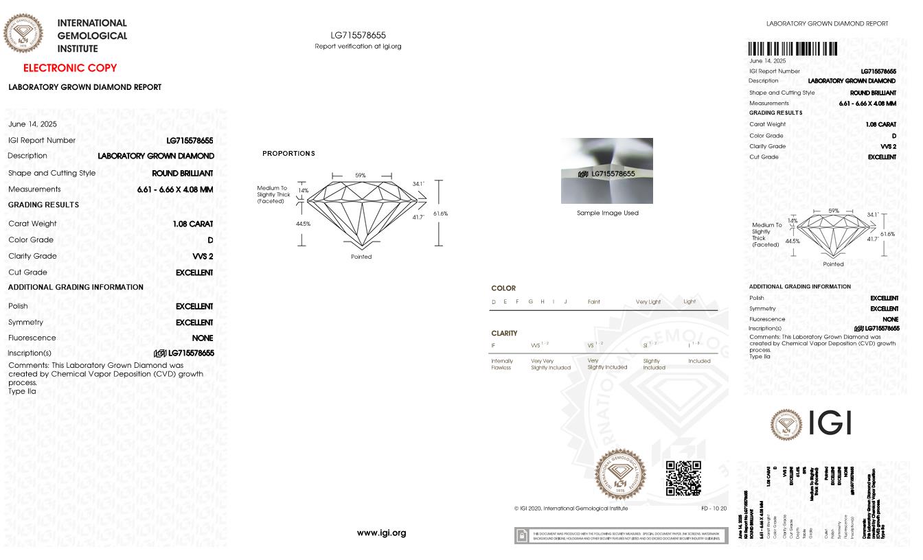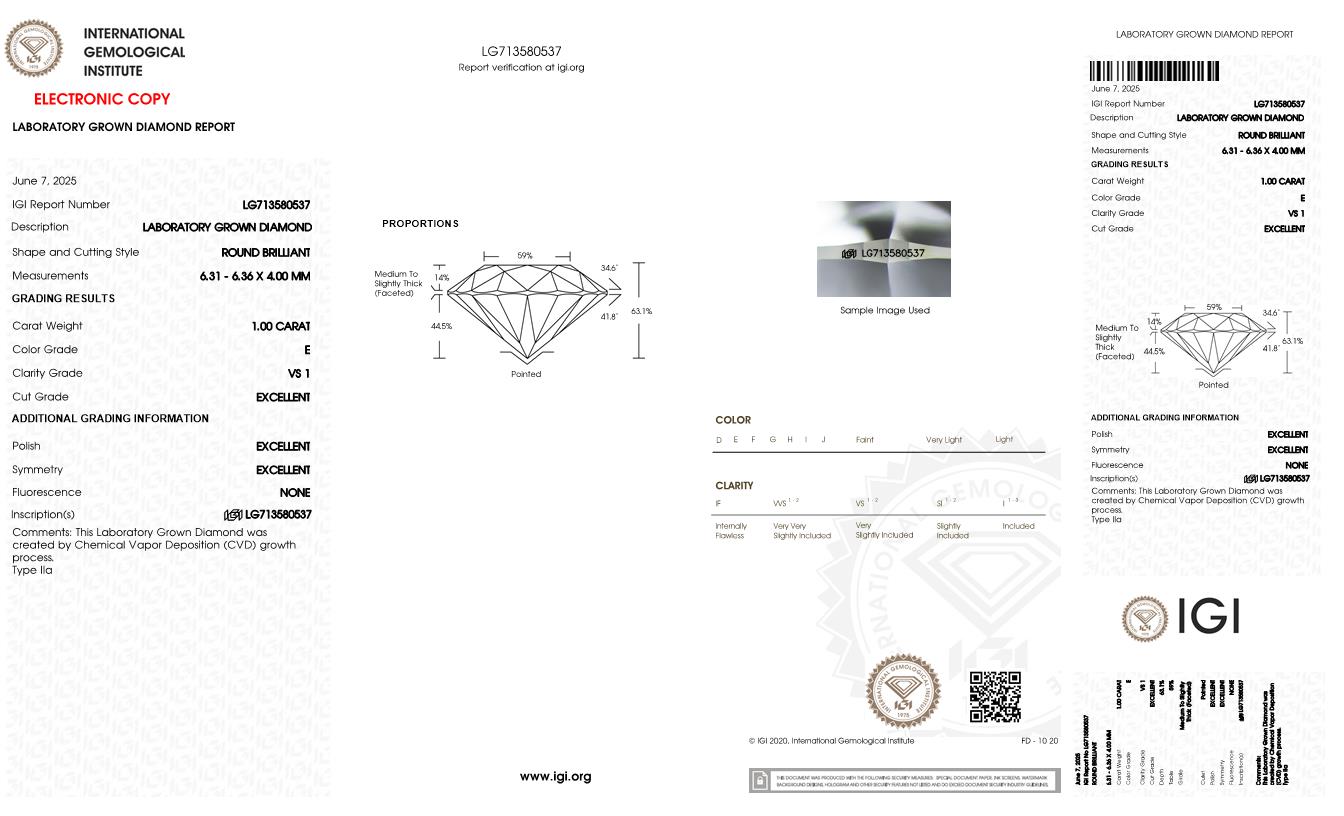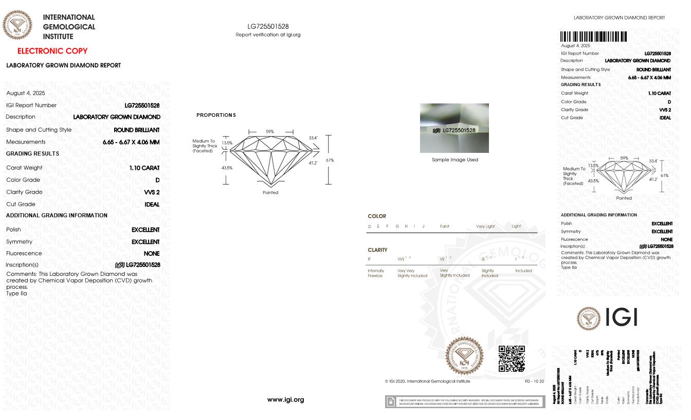 El proceso en el que los diamantes sintéticos se clasifican y certifican no es diferente a cualquier diamante natural. Los diamantes se envían a los labs de clasificación donde se determinan sus 4Cs y, según sus hallazgos, se clasifican los diamantes.