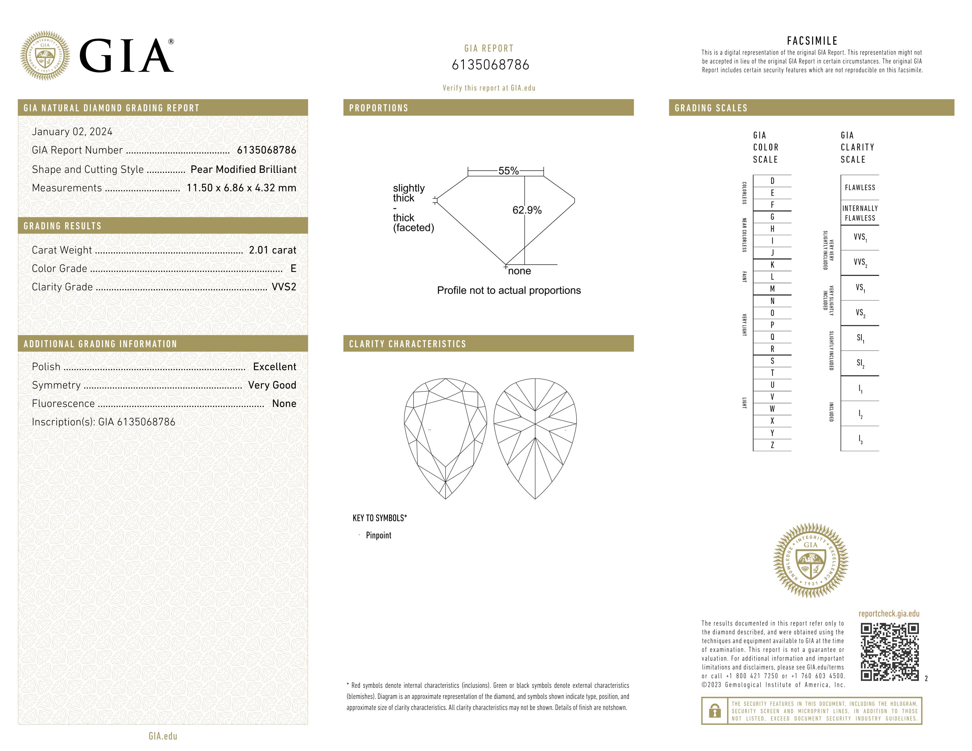 This photo shows what’s considered to be a perfectly portioned 1.91 D VVS2 carat pear